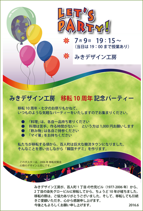 工房のパーティーのお知らせ