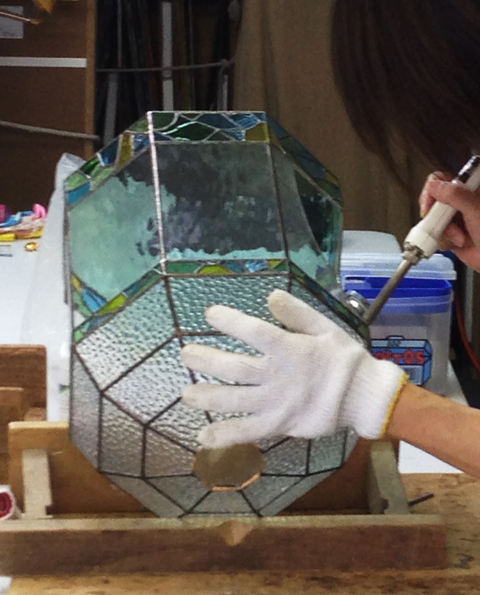 底面や周りにきれいな光が映る様に、モザイク模様を入れてみました。