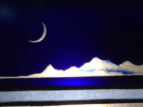 パネル 「山と空と森の響き」 で使ったサンドブラストによる山と空の陰模様を