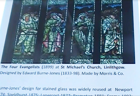 それが、上の写真の横に大きなライトボックスに入っている、エドワード・バーン=ジョーンズ原画のステンドグラスです。