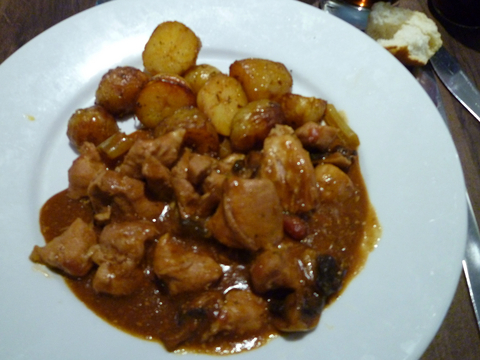 カンタベリーでの夕食は、豚肉の煮込みとベイクドポテト