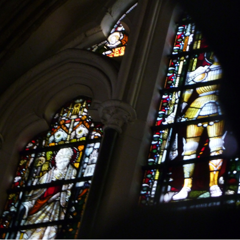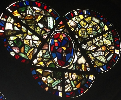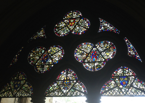 どうも、昔のステンドグラスを寄せ集めてコラージュしているようです。