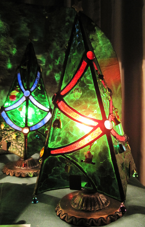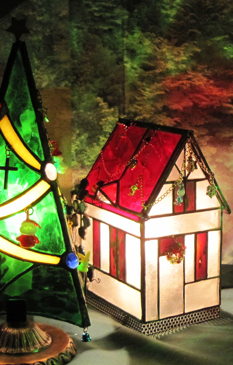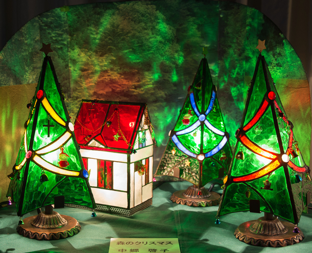 さて、今回は箱庭のような Xmasをテーマにしたステンドグラスを紹介します。 (「第36回 びどりを作品展」 出品作)