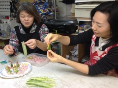 それから・・・ 早い時間から高橋講師が 「きゅうりのXmasツリー」 作り。