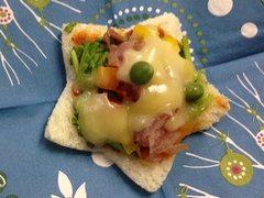高橋講師の星形のルッコラと生ハムのピザトースト。