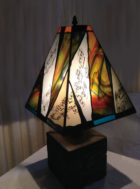 パソコンで、楽譜とガラスを重ね合わせて見る。