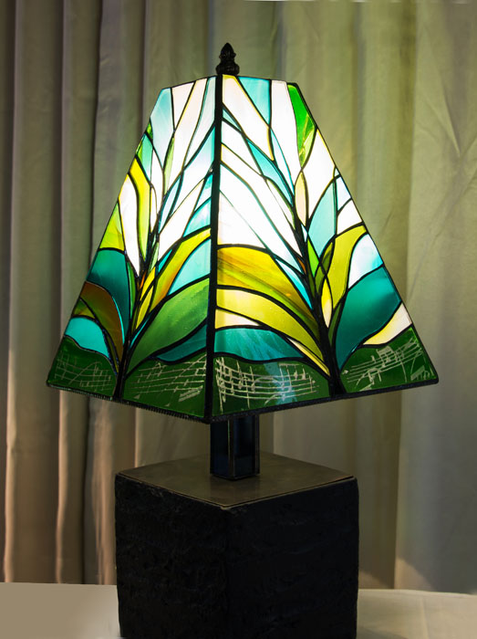 ランプの裾周りに、サンドブラストで楽譜を描きました。