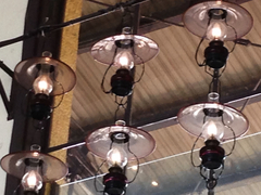 駅構内には、ガラスのランプがた〜くさん。