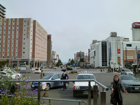 さっ、集合写真を撮りますよ〜、ここに並んでくださ〜い! (小樽駅前です)