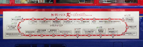 駅前で、新大久保エリア無料循環シャトルバス