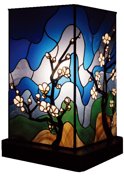 1999年の第19回びどりを作品展の後、病に倒れ、上の写真のランプ 「春の使者」 が最後の出品作となりました。