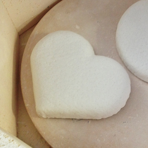 このあと、モールドの上にフュージングしたガラスを置いて、