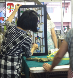 でフュージング部分のMaking を見ていただいたステンドグラスパネルをご紹介します。
