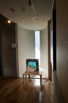 回廊を進むと自動販売機脇にもパネル作品を展示。