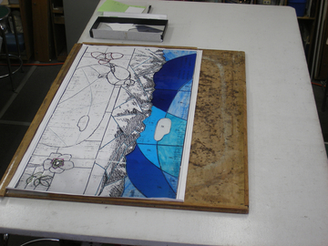 ・型紙を自宅で作ってから、一度、みきデザイン工房に来てガラス選び。