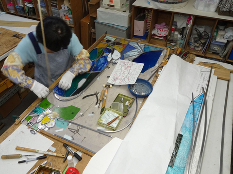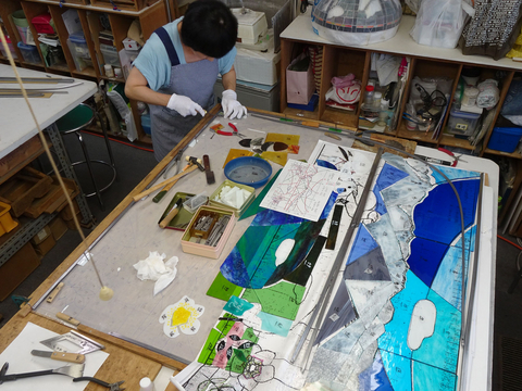 など、チェックしながらガラスを並べた、