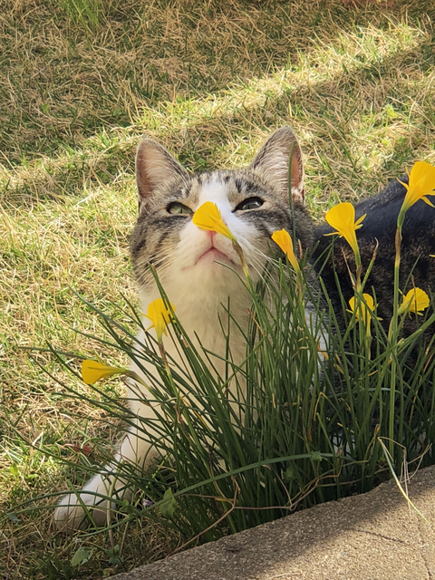 飯野さんの愛猫 「元ちゃん」 が、香りをかいでいる?