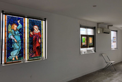 東、南、西の三方の窓には、ウインドウパネルを展示しております。