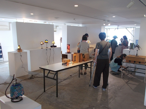 このあと、展示台に布をかけたり、延長コードで電源コードを配したり・・・