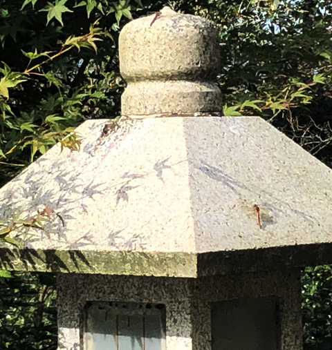 下の写真は、石灯篭にとまっていた赤とんぼです。