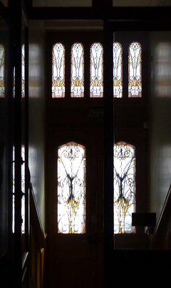 下の写真は、2階の展示キャビネの上にあったステンドグラス。