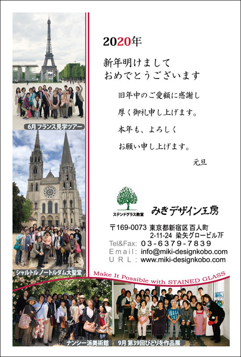 2020年も皆様とともに楽しくステンドグラスを制作してまいりたいと思います。