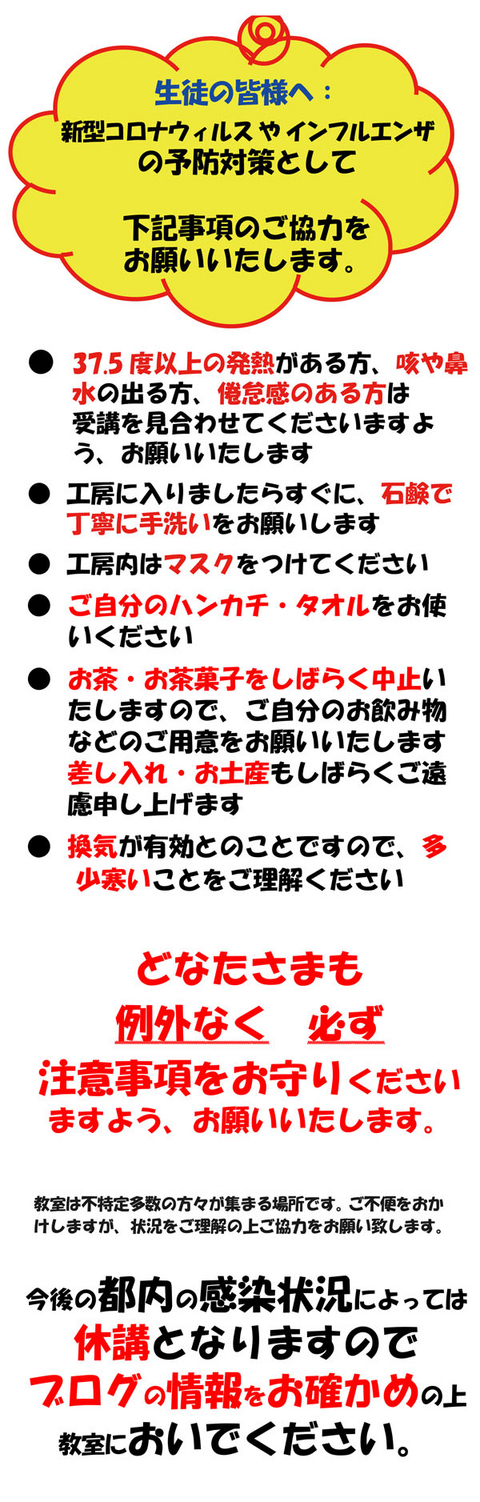 工房内での感染を防ぐため、どなたさまも 例外なく お守りください