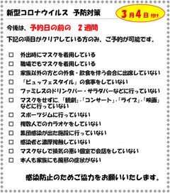 しばらく厳戒態勢での営業が続きそうですが、ご理解・ご協力をお願いいたします。