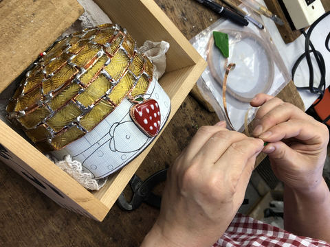 モールドにガラスをつけていきます。