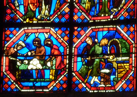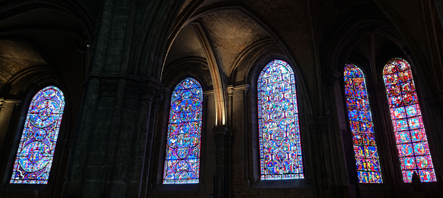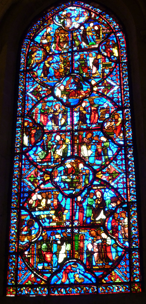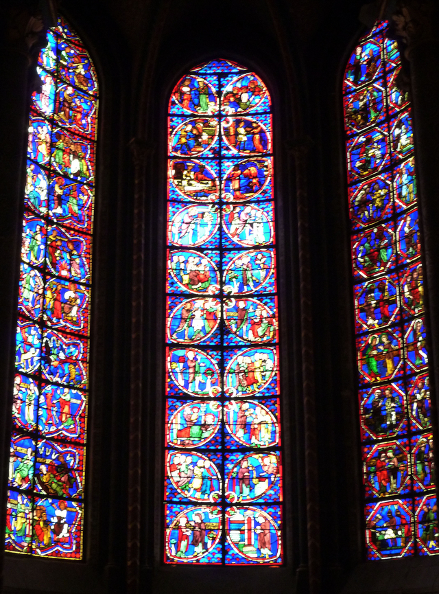 これだけの13Cのステンドグラスがよい状態で残されているのは、フランスの修復技術の高さを示しています。