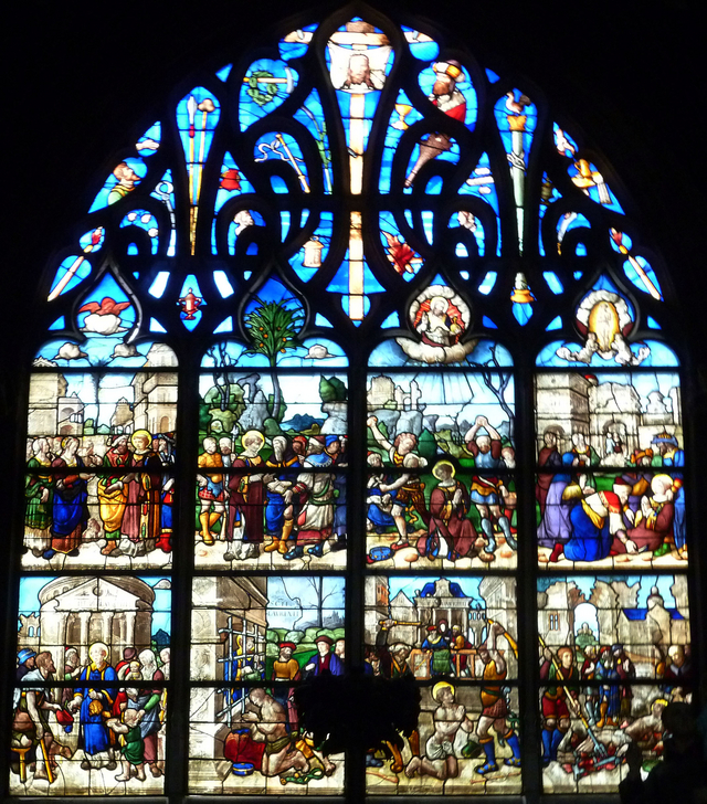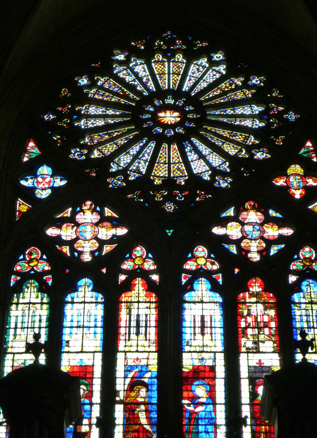 「ブールジュ大聖堂」 の身廊の両脇、すなわち南北の側廊のステンドグラスをレポートしています。南北の側廊にある礼拝堂のステンドグラスです。