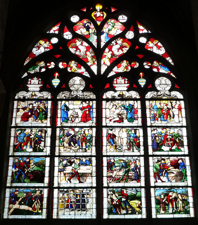 側廊は、15Cのステンドグラスが多いです。