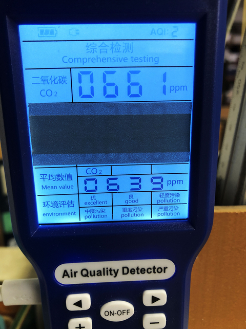 みきデザイン工房では、工房内の「二酸化炭素濃度」 が1,000を超えないように、常時確認しています。