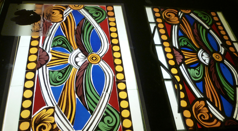 一番左のパネルの一番明るい部分を見て、ガラスを選び切り分けたところ。
