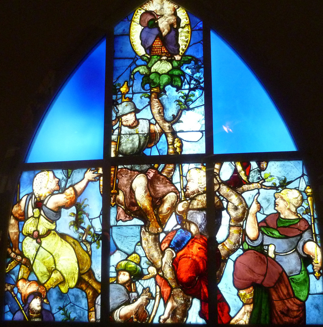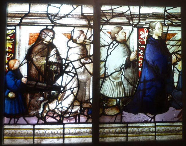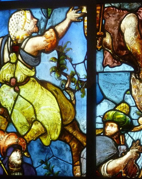 これは、シルバーステインを使っているので14C以降だろうし、肉体の表現法からして、ルネサンス以降のステンドグラスと思われます。