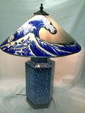 白い波と海の藍色は、被せガラスをサンドブラストして表現。