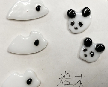 ライトをつけなくても楽しめるように、地面などを白を使わずにグレーのガラスを選びました。でもライトをつけると黄色くて、秋のパンダになってしまうのは、ちょっと残念なところです。