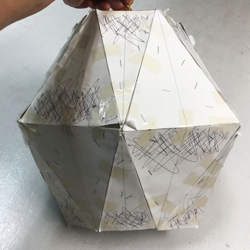 何をしているかのヒントは、上の紙で作った模型に描いた斜線です。