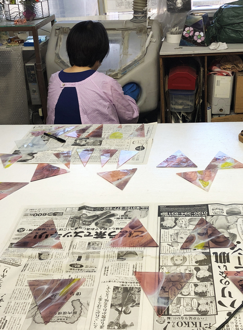 ステンドグラスグループ びどりを会員の高橋文江さんの作品です。