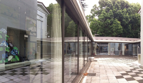 公園内の大階段を上がると見える、白く大きな建物の2階。