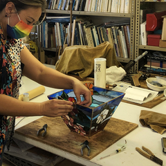 今までの作品とは違い、ランプのライトの光の透過を考えながらのガラス選びは楽しくも悩めたし、ハイビスカスを3Dに仕上げる新しい手法もご指導頂きました。