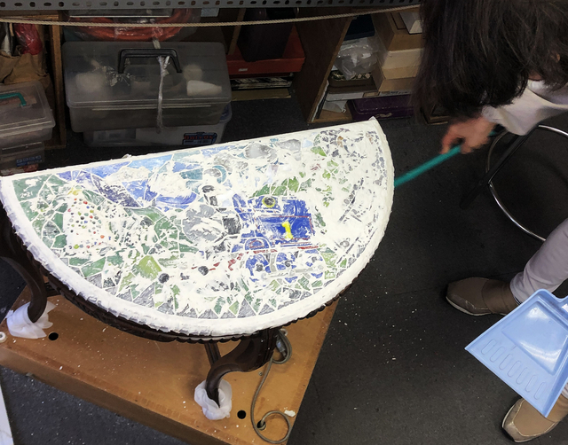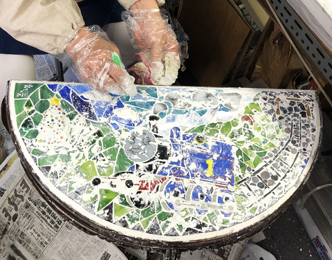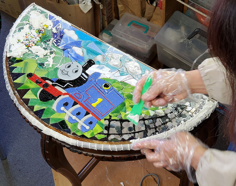 「元気なトーマス」 の、ガラスモザイクのテーブルのMakingをご紹介中です。