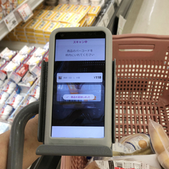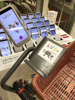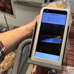 ・・・で、買い物が終わったら、レジにおいてあるQRコードを、この端末で読み取ります。