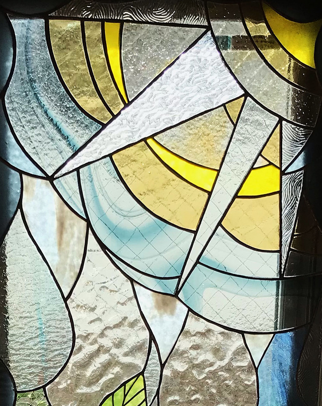 設置先が、東側の窓だったので、太陽のイメージが先に来て、入れたかったりんごのモチーフに繋げていきました。
