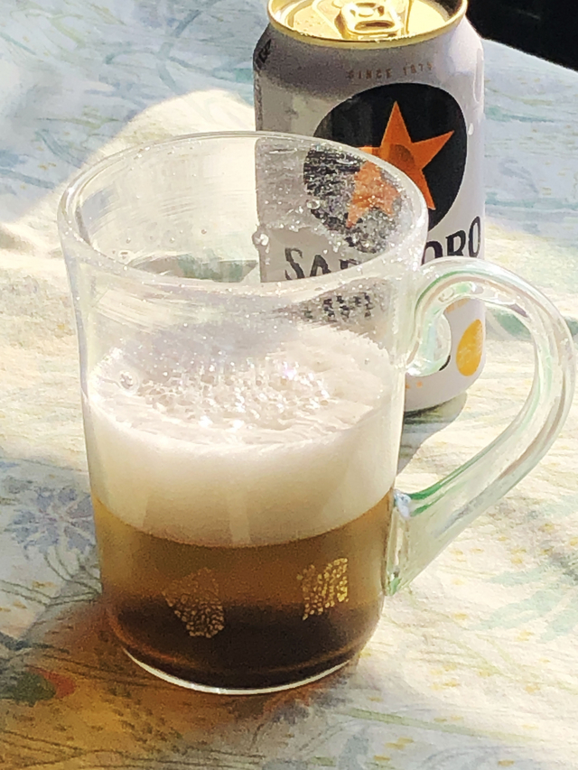 このビールジョッキを見ながら、他のグラスで飲んでいます。
