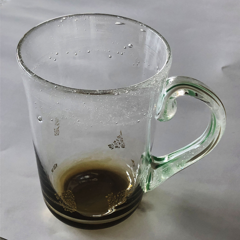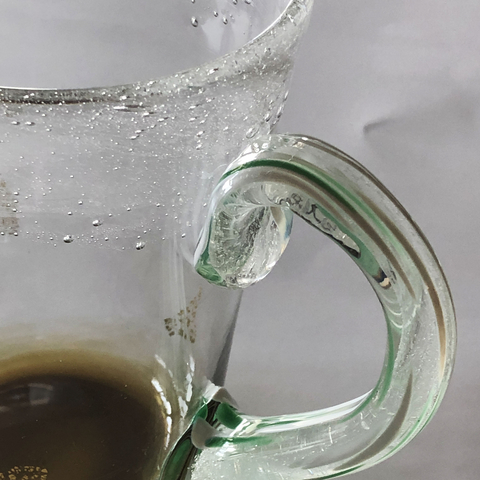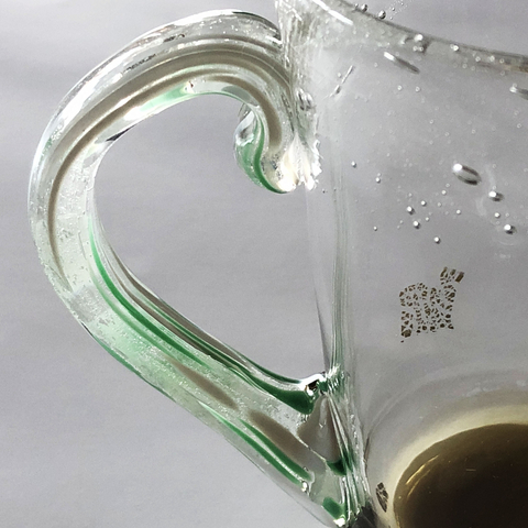 取っ手は、「グリーンとグレーが混じった色で流れを作り、内側には泡を入れたい」