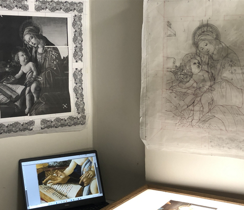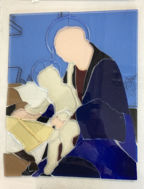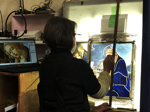 サンドロ・ボッティチェリの 「本の聖母」 のステンドグラスです。