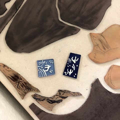 (白いニョロニョロ はエマイユの発色を確認するためのテスト焼きのパーツです。)