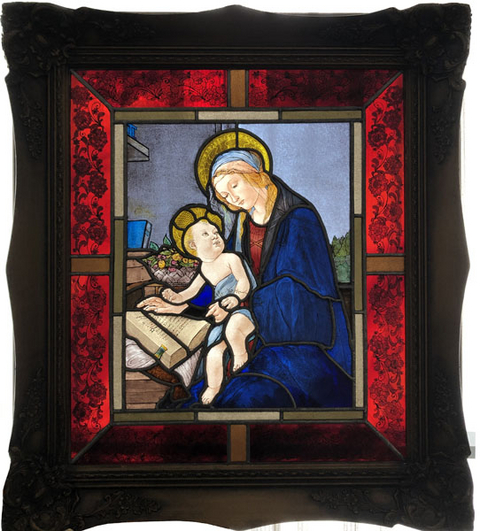 青い衣装の上の金色を、ステンドグラスで表現するのは難しかった。