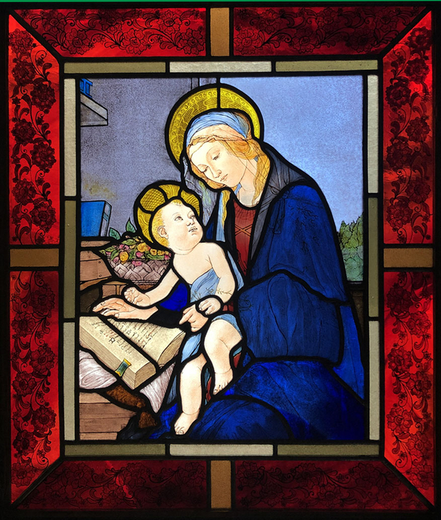 しかし、ステンドグラスは背面からの光を通して見るものなので、